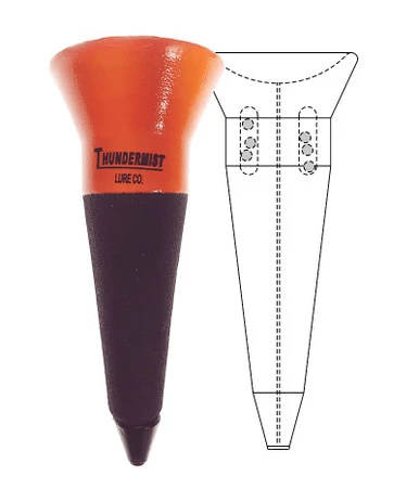 The Thundermist Popping Corks feature dual, internal rattle chambers for extra attraction and are weighted for long distance casting. They are made from premium long-lasting material with a high-vis fluorescent orange color above water and low-vis black underside, which won’t spook fish.