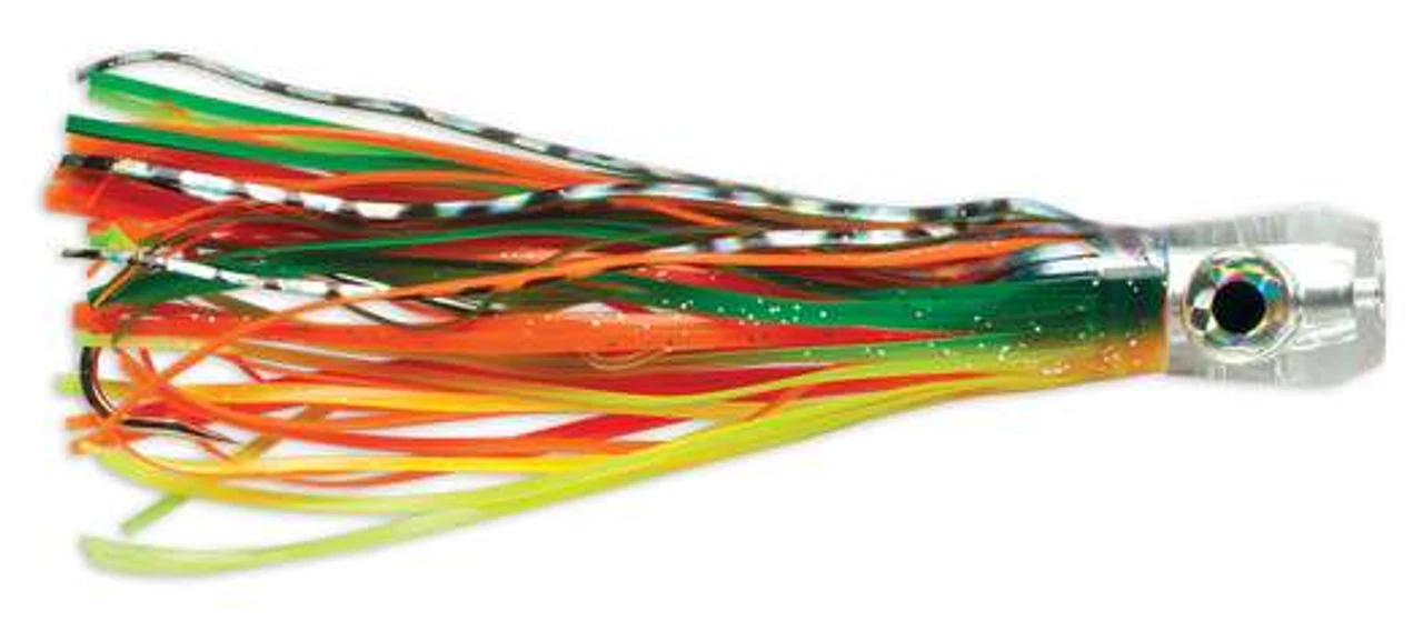 This heavy-duty 8″ trolling jig features a concave pusher head face that works an erratic swimming action to elicits savage strikes. Whether you rig it with ballyhoo, strip bait or “naked” this is an all-around lure good for billfish and large gamefish species anywhere in the world.